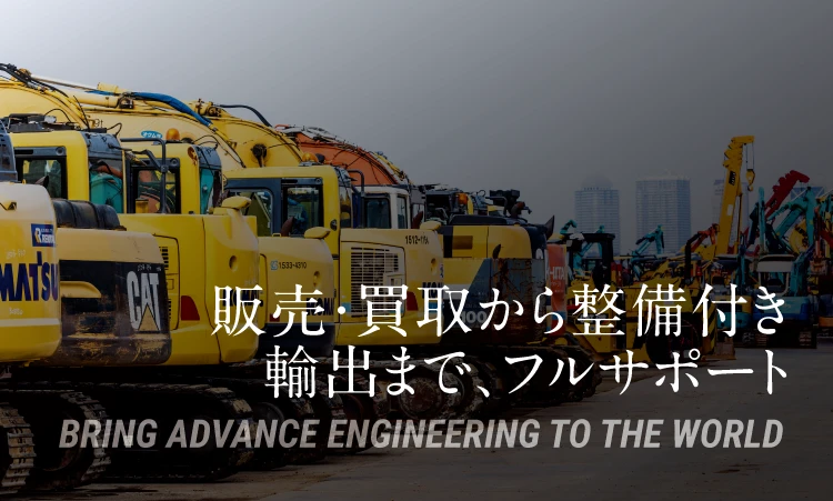 近年では大手建設会社の海外進出に伴い、ゼネコン向け機械の整備や輸出が盛んになりました。しかし、輸出した際に現地に到着後機械に油漏れや機械が突然動かなくなった等のトラブルをよく聞きます。そういったトラブルを未然に防ぐ為にもフィールドメンテナンスでは修理・整備を行ってからの輸出をお勧めしています。